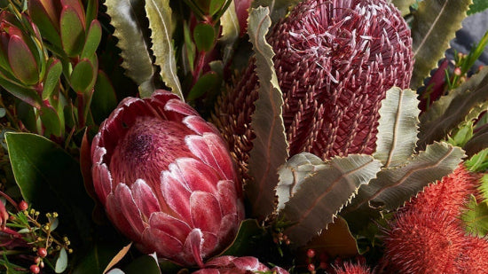Love the rustic look? Our floral artists will create gorgeous, free-form wedding florals featuring the best seasonal Australian Natives / Proteaceae, along with lots of textural material.